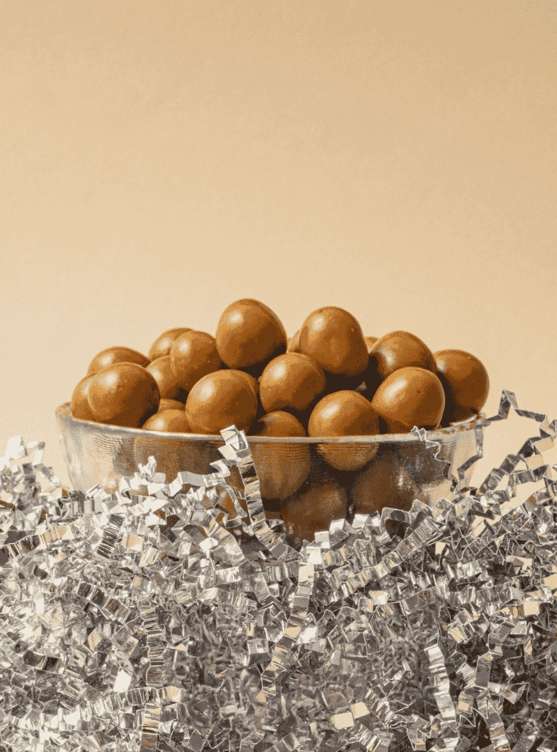 Hazelnuts, coconut sugar, demerara sugar, cocoa butter, coconut milk powder, filtered water, cashews, roasted sesame, buckwheat tea, coconut oil, locust bean gum, sunflower lecithin, Himalayan salt, natural “Bourbon” vanilla pod.