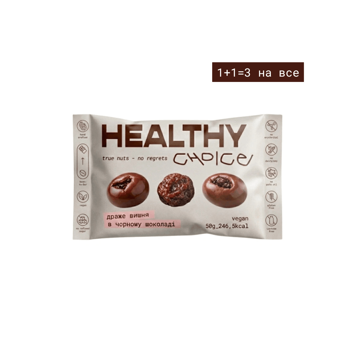 вишня сушена, какао-боби, какао-масло, тростинний цукор, молоко кокосове сухе, сіль, ванільна паличка “Бурбон”, лецитин соняшниковий