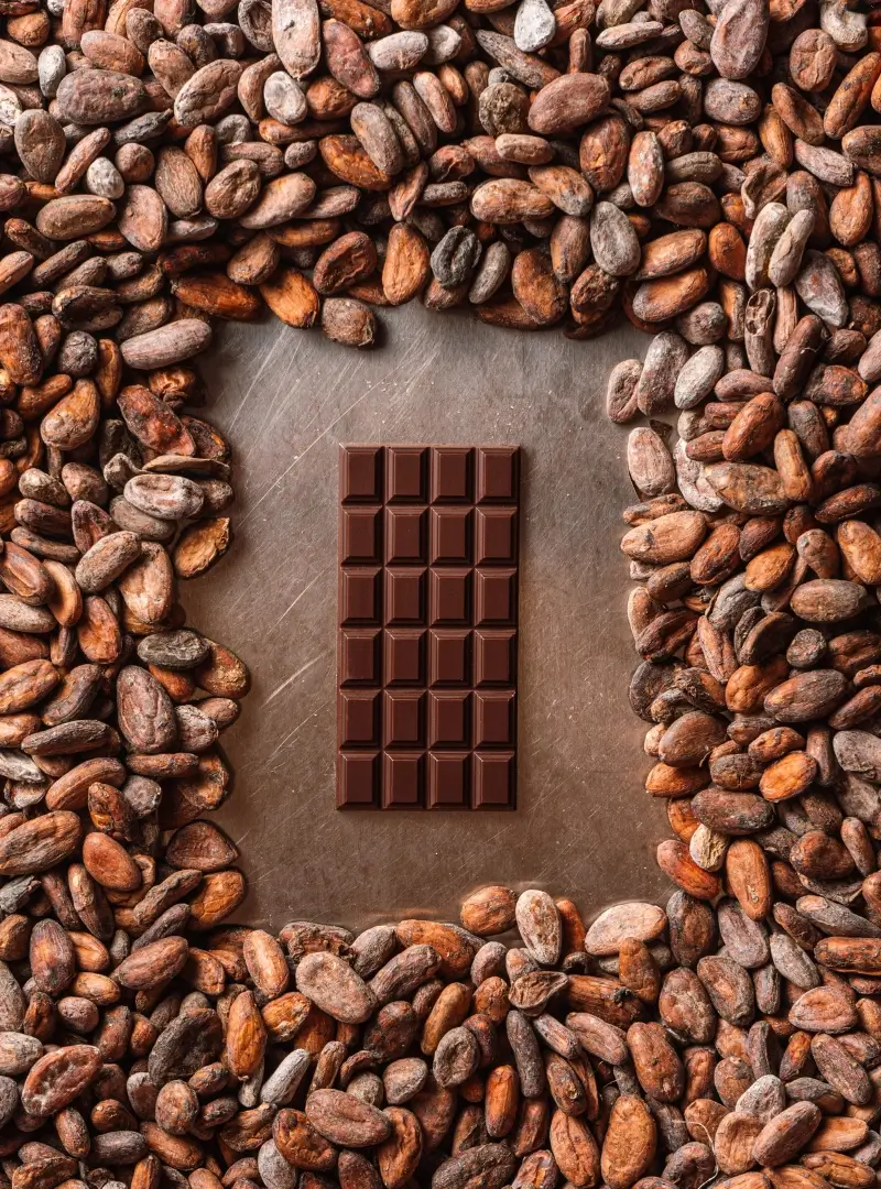 Какао-бобы, сахар мусковадо, какао-масло, орех кешью. Минимальное содержание какао-продуктов в шоколадной массе – 77%. Содержит орехи.